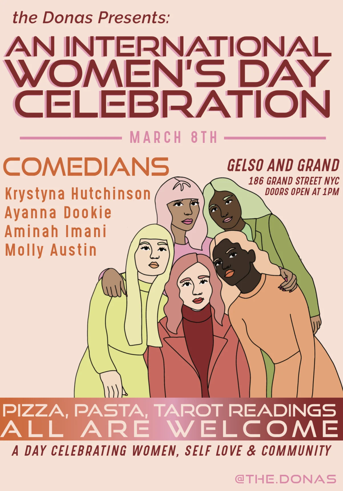 AN AFTERNOON CELEBRATING WOMEN & FOOD. WITH PERSONAL STORIES AND ADVICE FROM NYC'S TOP COMEDIANS. OFFERING A MENU CREATED IN COLLABORATION FOR US FROM OUR FRIENDS AT GELSO & GRAND.