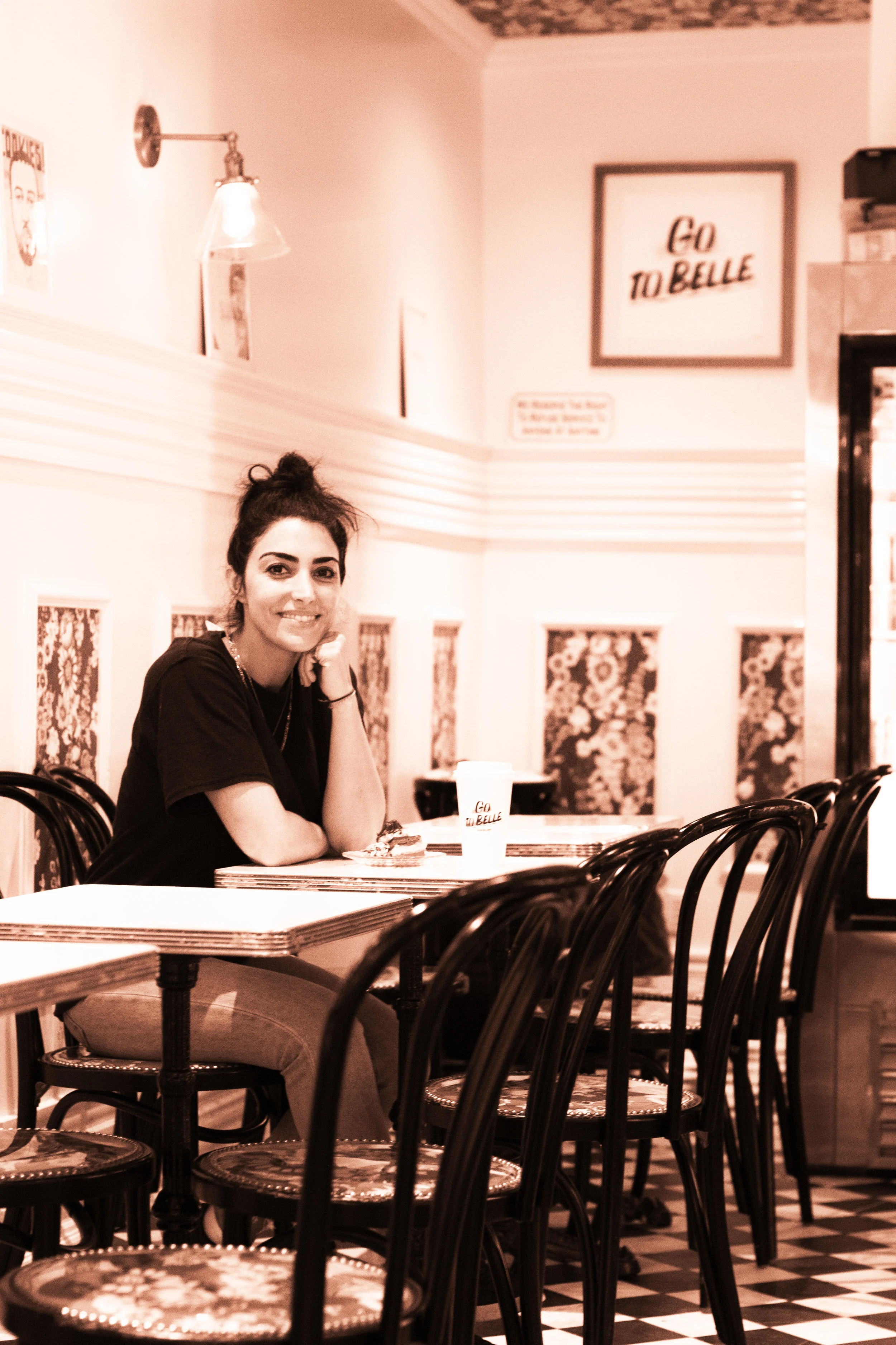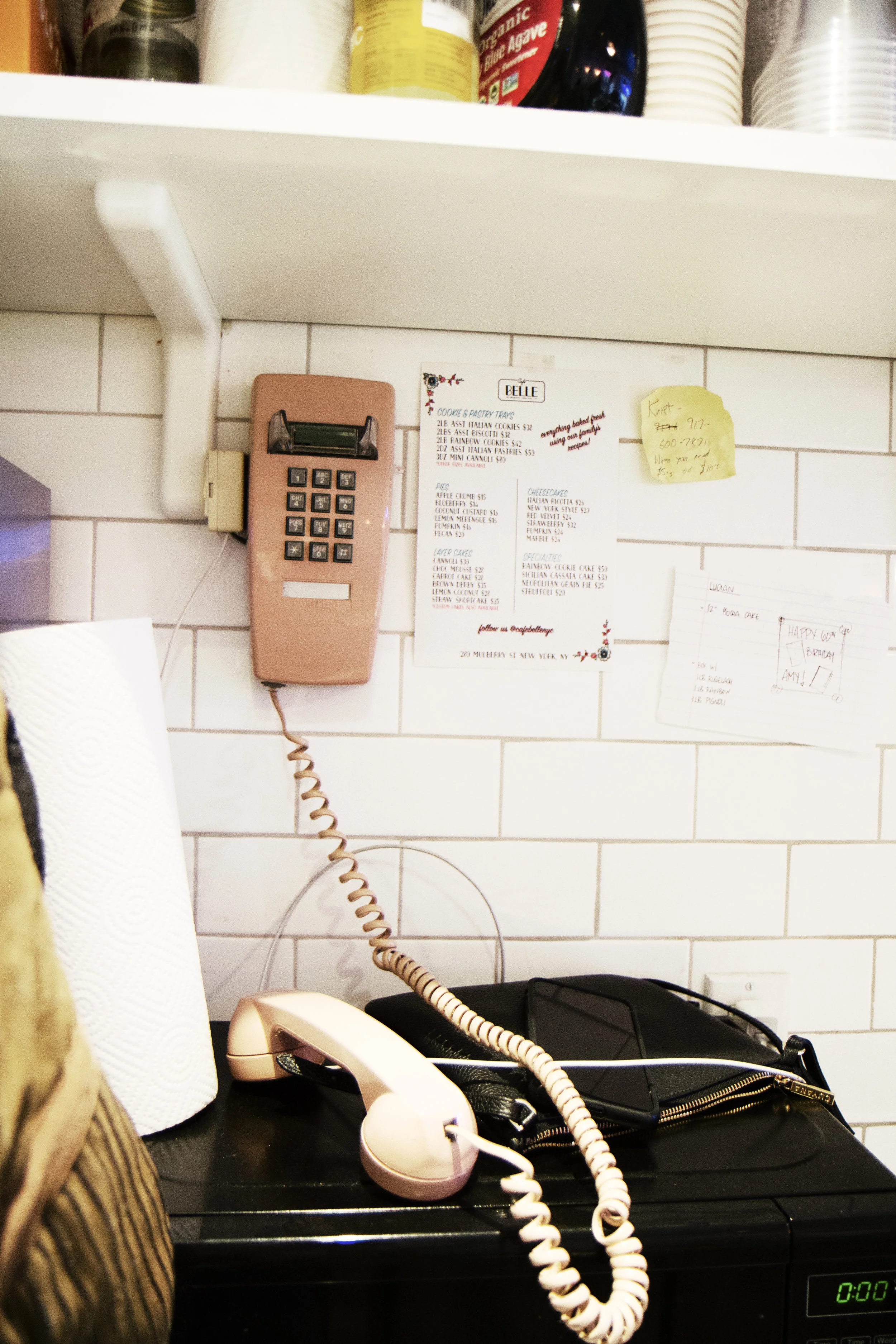 Cafe Belle, her baby, is Noelle's mini-me. "I’m pulling all my backgrounds together here. I had the playlist for the place picked out before I had a location". Fusing together a childhood in that NJ bakery and her PR background, as well as her grandmother’s personal style and decor, she did it all. "This place is an homage to disco, Bensonhurst, my grandmother's mumus [referencing the floral wallpaper], I went crazy with the marble, cause my grandmother's place had the marble." Noting that she didn’t have a P.R. agency behind her, she did all the branding and marketing herself. Finally, after being in business for almost two years everything just fell into place. "The first year I was here I was like shitting my pants, like how am I gonna do this?? the bills are coming in, barely making it by - I need to sell a lot of cookies. I’m right by a gym and selling cookies!!!" She points out the window shaking her head. "But then I had to put some thought into the coffee and how I was going to market to the block. I mean my coffee machine was more than my Fiat."